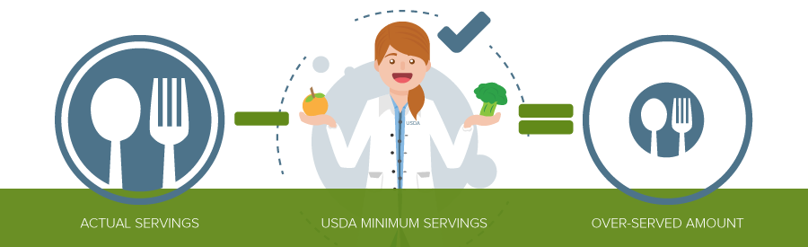 You can get a baseline of what you should be serving—using the USDA minimum serving sizes is a great place to start. Then, you should have a record of what you actually served—this can be entered by your cooks on the day of service. If you subtract the USDA minimum from your actual serving, you’ll see what is being over-served.